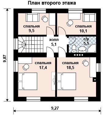На втором этаже размещаются две большие и две маленькие спальни, а также ванная комната.