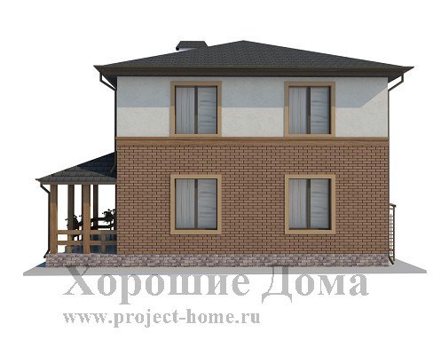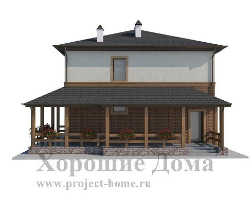 Отделка фасада – облицовочный кирпич и декоративная штукатурка.