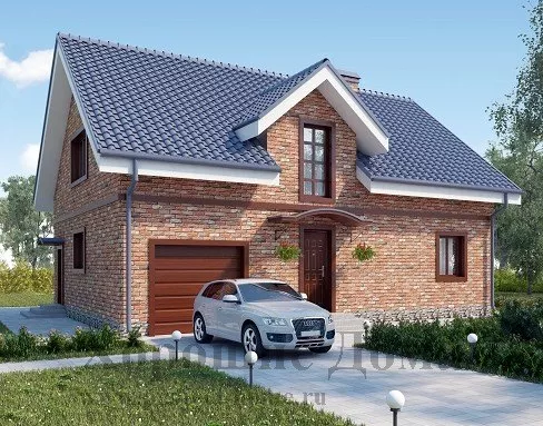 Проект дома из газобетона с гаражом, мансардой и эркером, 200 кв. м.