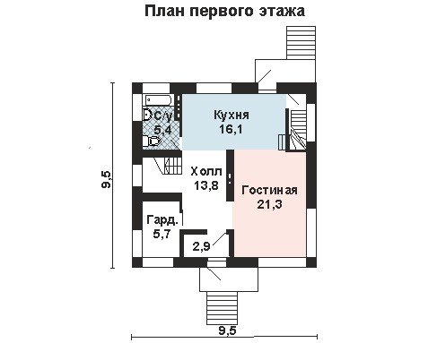 Квадратный проект дома из газобетона 9.5x9.5 217.2 кв.м.
