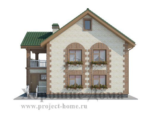 Крепкий и надежный особняк для загородного или городского постоянного проживания. Площадь этого коттеджа из газобетона 155,4 кв. м. Отсутствие цокольного этажа делает постройку по данному проекту возможной практически на любом грунте. Внешне привлекательный и внутренне отлично спланированный коттедж пленяет своей бросающейся в глаза надежностью и универсальностью.