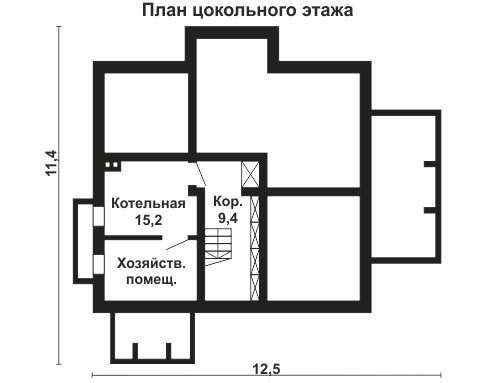 Все хозяйственные помещения размещены на цокольном этаже дома, там находятся котельная с прачечной и вместительная кладовая комната.