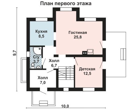 Дом из газобетона с эркером 9.7x10 158.4 кв.м.