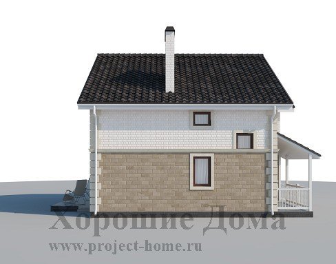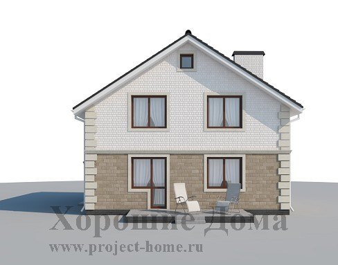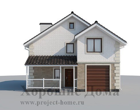 Двухэтажный загородный дом с нарядным эркером на въезде в гараж, очень бюджетный, рациональный, экономичный. Проект рассчитан для проживания небольшой семьи в составе 2-4 человек в теплое время года.