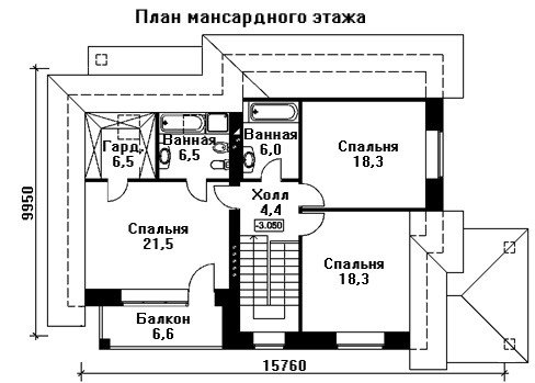 мансардный этаж- (общая площадь 84.2 м2) – холл, балкон, спальные комнаты-3, гардероб, ванная, с/у.