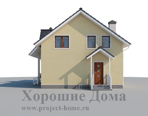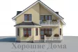 Уютный загородный коттедж для небольшой семьи из двух-пяти человек имеет два этажа, один из которых мансардный. Внешний вид дома приятно освежают два трехгранных эркера на первом этаже здания и белоснежные колонны и балюстрады, украшающие небольшие террасы на первом и на втором этажах.