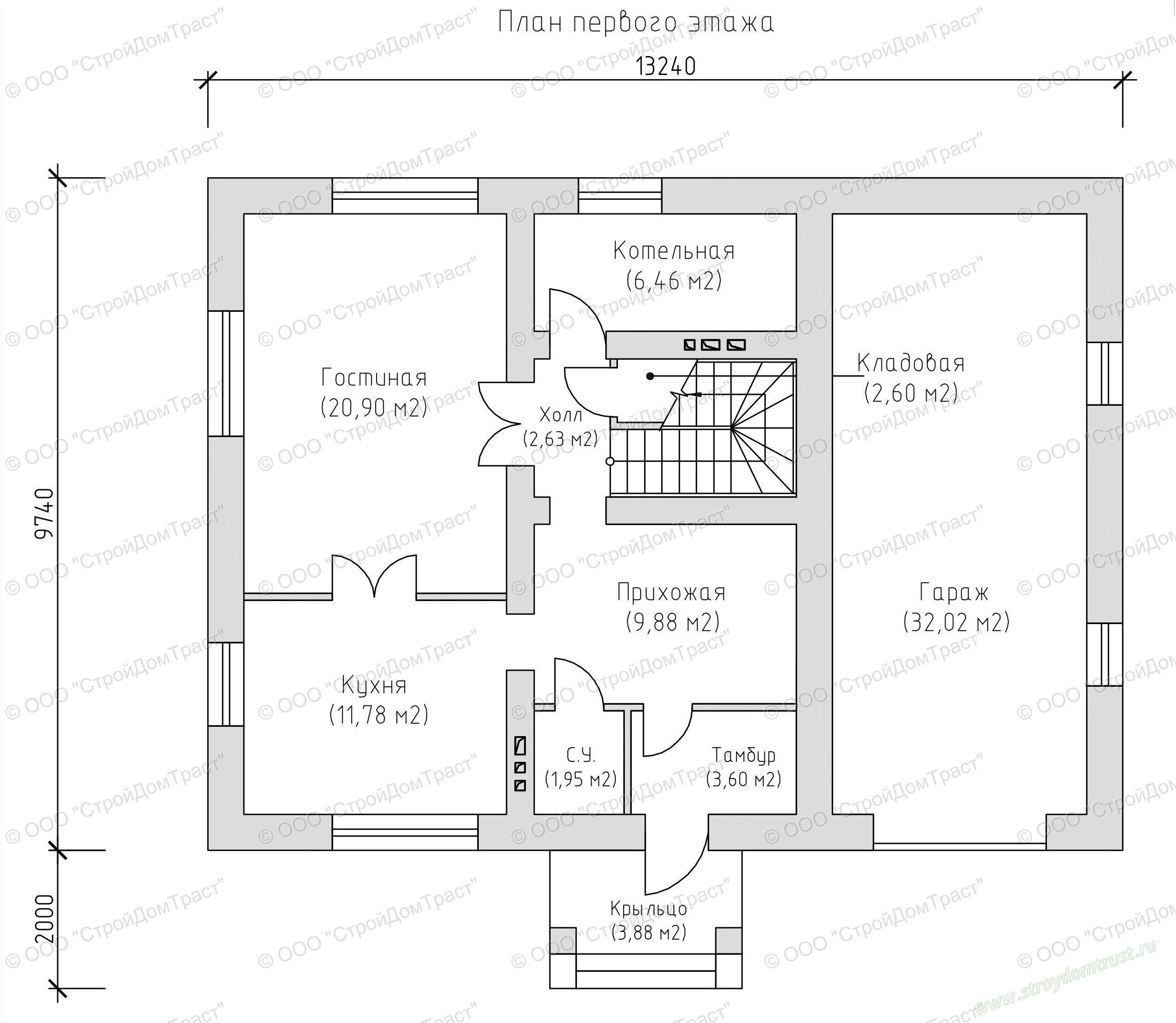К первому этажу дома примыкает большой гараж для нескольких автомобилей (32,02 кв.м).
