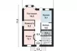 Планировка компактна и логична. Первый этаж имеет длинный холл от самого парадного входа до входа в гостиную. По бокам друг напротив друга размещены такие помещения, как котельная, санузел и две комнаты свободного назначения, прекрасно подходящие как для обустройства мастерской или кабинета, так и для гостевой или детской комнаты. Холл упирается в светлую уютную гостиную размером 19,5 кв. м., по одной из стен которой расположен оригинальный эркер. Гостиная совмещена с помещением кухни – 9,1 кв. м.