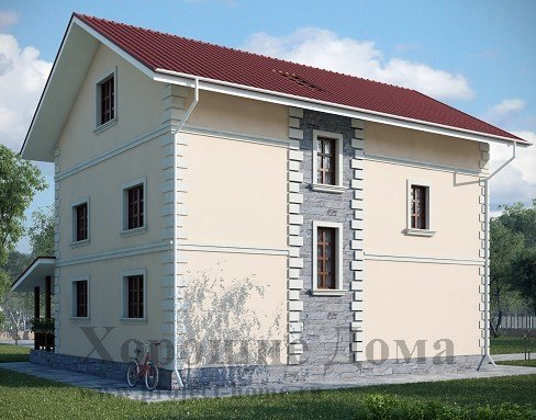 Отделка фасада - декоративная штукатурка с фрагментами из натурального камня.