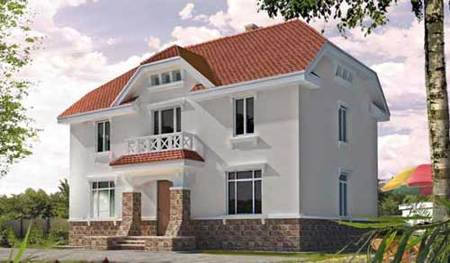 - Двухэтажный коттедж из газобетона и облицовочного кирпича