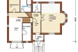 Небольшой по размеру в плане (10 на 13 метров) дом из газоблока. Рассчитан на постоянное проживание семьи, состоящей из 4 - 5 человек. Наиболее приемлемый для комфортного проживания набор помещений и их взаимное сочетание располагают к уютной обстановке в интерьере. Хорошо продуманные фасады прекрасно впишутся в любую среду застройки. Входная часть (тамбур) выполнена в виде остекленной веранды, пройдя которую, мы попадаем в холл, из которого открывается вид на гостиную и кухню-столовую с эркером. Особенностью внутренней планировки является перепад между отдельными частями дома на пол-этажа.
