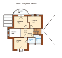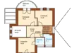 Три комфортабельные спальные комнаты размещены на втором этаже и имеют общий холл с видом на столовую первого этажа. В одной из них предусмотрен собственный санузел площадью 4 кв. м.