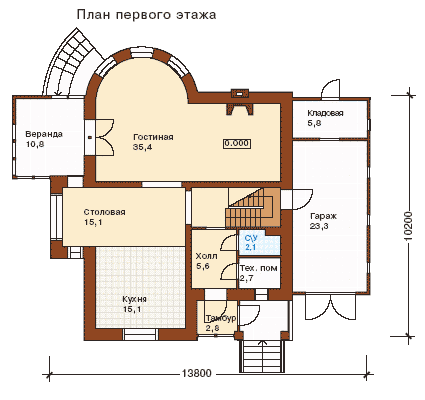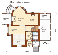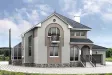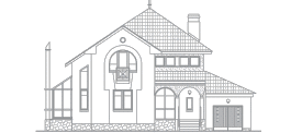 Очаровательный живописный дизайн фасадов этого простого в плане воплощения коттеджа площадью 186 кв. м. представляет собой привлекательный, логичный и конструктивный экземпляр, являющийся одним из лидеров в сегменте загородных особняков данной категории. Проект интересен и тем, что предусматривает двусветную столовую, что автоматически делает внутреннее пространство более широким и уютным для восприятия. На входе в гостиную расположен стильный полукруглый эркер, позволяющий придать дизайну интерьера особую уникальность. Так же приятным дополнением является наличие в доме зимнего сада и уютного камина в гостиной.