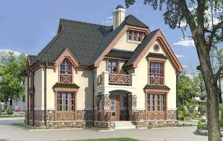 Проект двухэтажного дома из газоблока с фигурной крышей