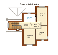 На втором этаже компактно размещены три спальни и один общий санитарный узел.