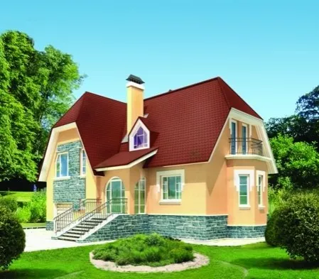 Коттедж для загородного проживания из газосиликата площадью 126,38 кв. м. спроектирован достаточно удачно для комфортабельного размещения одной средней по численности семьи, привыкшей к городскому комфорту. Приятный глазу дизайн экстерьера этого особняка способен привлечь внимание и оставить ощущение домашнего уюта и надежности постройки. Симпатичный эркер первого этажа с балкончиком на крыше придает дизайну особенную элегантность.