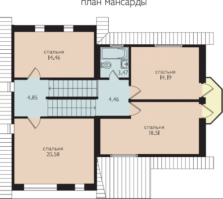 Четыре просторные спальные комнаты находятся на втором этаже особняка, при этом две их них оборудованы отдельным выходом на общий балкон.