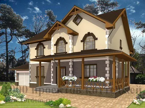 Выразительный загородный коттедж, очень нарядный и праздничный благодаря стильному дизайну фасада, эффектному рисунку крупных окон, элегантному эркеру на входе в дом с козырьком, повторяющим контуры основной кровли. Коттедж предназначен для постоянного проживания небольшой семьи в составе 2-4 человек.