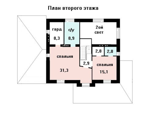 Зона отдыха – это мансарда. Там разместились апартаменты для хозяев дома с вместительной гардеробной и большой ванной комнатами, а также меньшая по площади спальня, соответственно, с меньшей гардеробной комнатой и небольшим санузлом.