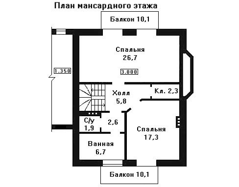 На мансардном этаже находятся апартаменты хозяев дома и ещё одна спальня меньшей площади, а также ванная комната, санузел и кладовая. Обе спальни оборудованы балконами.