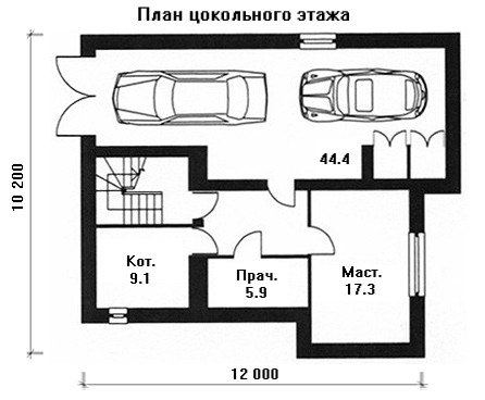 Главное здание имеет трёхэтажное исполнение, включая вместительный цокольный этаж, где находятся гараж на две автомашины, котельная, прачечная и мастерская.