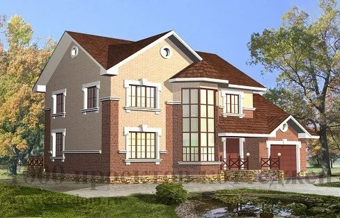 Двухэтажный кирпичный дом с гаражом и эркером