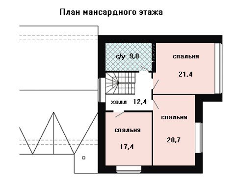 Зона отдыха на мансардном этаже представлена тремя просторными спальнями и ванной комнатой.