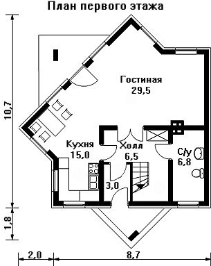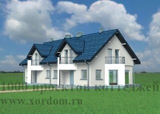 Экономичный загородный коттедж для сезонного проживания на две семьи. Дом очень светлый, комфортный, его внутренняя планировка предусматривает необходимый для приятного отдыха набор помещений. На первом этаже, вход в который организован через небольшой тамбур, находится небольшой холл с лестницей на второй этаж, из холла можно попасть во все остальные помещения – кухню, санузел и через распашные двери в гостиную. Гостиная составляет общее пространство со столовой, которое затем плавно переходит в кухню. В гостиной имеется возможность для установки камина и оборудован выход на террасу.