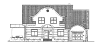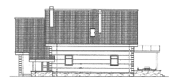 При общей площади в 198,6 кв. м. коттедж не выглядит громоздким, а представляет собой достаточно аккуратный загородный особняк в духе загородной виллы. Рассчитанный на постоянное проживание небольшой семьи этот дом понравится людям с хорошим вкусом, предпочитающим простые линии в архитектуре и отсутствие нагромождения различных элементов в дизайне фасадов. Небольшое крытое крыльцо провожает в дом через парадный вход, где небольшой тамбур, а затем более просторный холл с лестницей. Слева расположена кухня-столовая размером 29,8 кв. м., а справа спальня и большая ванная.