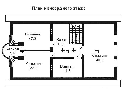 На мансардном уровне имеются три комнаты под спальни и ванная. Две смежные спальни, обращенные на фасад, оборудованы совместным балконом и украшены закругленными эркерами.