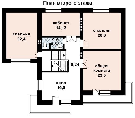 На низком уровне мансардного этажа располагается одна из спален, а на высоком уровне – кабинет, спальня, холл и комната для отдыха общего пользования.