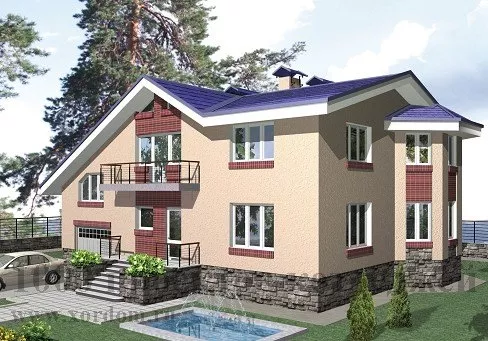 Двухэтажный кирпичный дом до 300 кв.м с асимметричной крышей