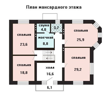 Мансардный этаж – это зона отдыха и ночного пребывания, здесь удачно разместились четыре спальни, санузел и мини-сауна. Спальня хозяев дома занимает помещение с эркером, открывающим замечательный вид в сад.