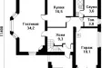 Достаточно даже беглого взгляда на план коттеджа, чтобы понять насколько планировка дома рациональна, проста и эффективна. Традиционно первый этаж отведён под зону дневного пребывания, состоящую из помещений кухни-столовой, гостиной и просторного холла. Примечательно, что площади кухни и гостиной прирощены элегантными эркерами с высокими витражными окнами для отличного обзора. Также на первом этаже находятся встроенный гараж, смежное с ним помещение котельной, блок сауны и санузел.