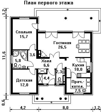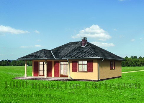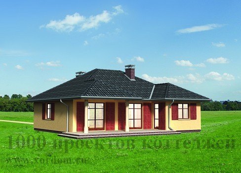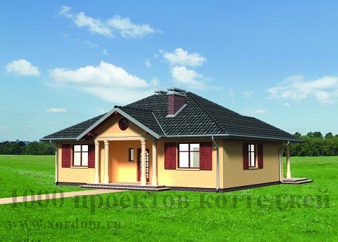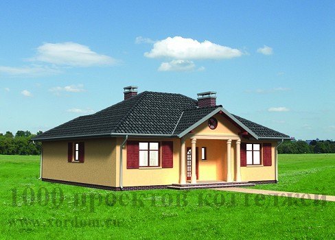 Даже внешний вид этого одноэтажного кирпичного загородного дома уже говорит об уюте, теплоте и особой атмосфере, царящей внутри. Проектом этого дома предусмотрено проживание небольшой семьи или молодой пары. Вход в помещение дома располагается как с фронтальной стороны здания - через уютное небольшое крылечко, ведущее в тамбур-гардеробную, так и со стороны заднего дворика - через привлекательную солнечную террасу, имеющую два входа в гостиную. Расположенный по центру дома холл проведет в уютную гостиную с большим угловым камином, компактную кухню, помещение котельной и прачечной, одну из двух спальных комнат, ванную комнату с санузлом. Гостиная также используется в качестве столовой. Внешний вид дома радует глаз своей элегантностью.