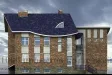 Уникальный по своей форме коттедж из кирпича имеет яркую запоминающуюся архитектуру и подходит для постройки среди городских коттеджей. Необычные «ломаная» крыша и форма дома оставляют особенно впечатление от созерцания такого особенного особняка в авангардном стиле. Несмотря на некий «стилевой бунт» этот проект полностью соблюдает комфортабельную планировку внутренних помещений, предоставляя хозяевам полный набор от цокольного этажа до второго. В большом подземном гараже легко поместится два автомобиля и даже останется место для размещения автомобильных принадлежностей, так как площадь его составляет 41,3 кв. м. Помимо хозяйственных помещений тут так же находится банный блок с бассейном.