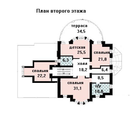 Три спальни и детская занимают весь второй этаж, а мансарда предлагает свободное для планировки помещение размером 67,5 кв. м