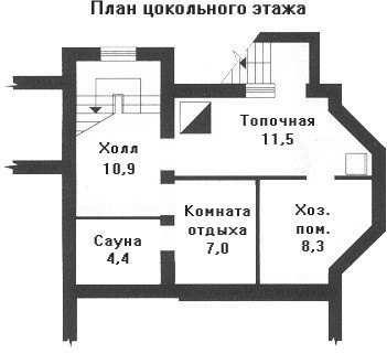 Первый этаж дома спланирован под зону дневного пребывания и разделён центральным холлом на две функциональные половины. Левая часть – это общее пространство кухни и столовой с большим эркером, из которого открывается отличный вид на участок. Правая половина – двусветная гостиная с камином и кабинет. На территории мансард вокруг небольшого холла сосредоточены три комнаты под спальни, ванная и гардеробная. Цоколь довольно высокий, на нём разместились зона для расслабления и отдыха с сауной, хозпомещение и котельная, оборудованная отдельным выходом на участок.