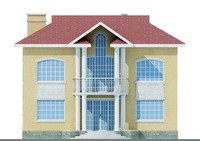 Простой по форме и компактный по содержанию этот особняк из кирпича понравится семьям, предпочитающим минимализм в отделке фасадов. Несмотря на некую сдержанность в дизайне экстерьера коттедж украшен изящными колоннами, предваряющими парадный вход, а также симметрично размещенными на балконе над входом в дом. Кроме того, элегантным штрихом к общему впечатлению можно назвать широкие окна первого и второго этаже, визуально объединенными друг с другом оригинальным декором.