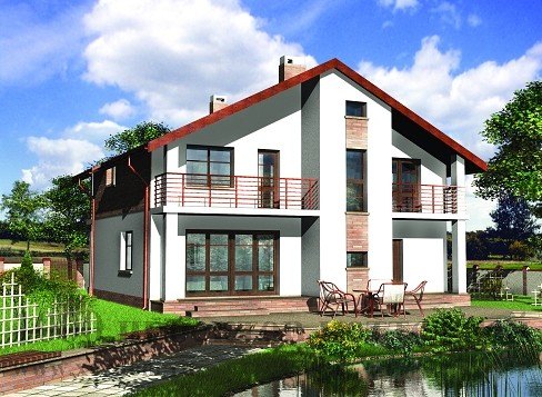 Современный загородный дом имеет простые конструкции и строгие планы, на парадной стороне фасада и противоположной ему стороне, обращённой в сад, обустроены в зеркальном отражении небольшие террасы и балконы. Дом предназначен для постоянного проживания небольшой семьи в количестве 2-4 человек.