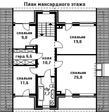 Четыре спальни и просторная ванная комната представлены в зоне отдыха на мансардном этаже.