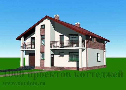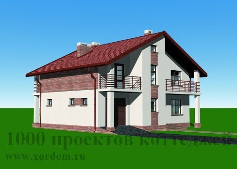 Проект двухэтажного дома из кирпича на 190 кв. м с прямоугольными эркерами