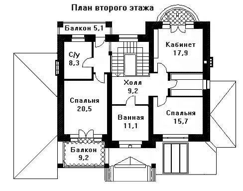 На территории второго этажа разместились две комнаты под спальни, кабинет, ванная. "Хозяйская" спальня особняка оборудована персональной ванной комнатой и имеет выход на балкон.