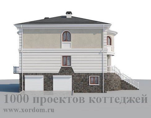 Загородный коттедж в классическом стиле с элементами ренессанса и модерна. Такое смешение стилей позволяет добиться легкого эффекта благородства каждой линии экстерьера без излишней вычурности и нагромождения деталей. Симметрично расположенные округлые эркеры в высоту всего особняка можно назвать изюминкой данного проекта. Цокольный этаж в доме отсутствует, что компенсировано довольно низким первым этажом, где находится гаражное помещение для двух машин и автомобильных принадлежностей общей площадью 51,8 кв. м. Тут же расположено несколько комнат под хозяйственные нужды.