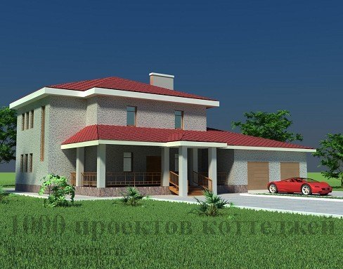 Проект кирпичного дома с мансардой с двухуровневой крышей