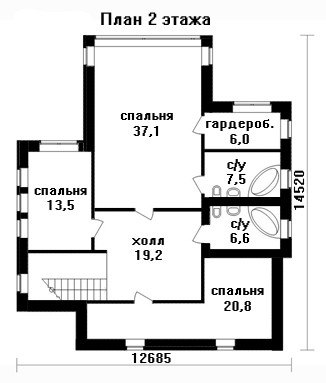 На территории второго этажа в зоне ночного пребывания находятся две комнаты под спальни, холл, ванная и апартаменты хозяев дома с персональной ванной и гардеробом.
