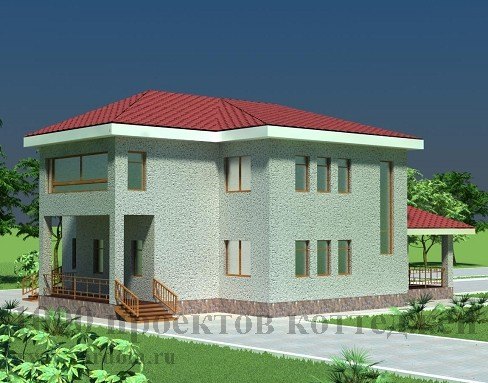 Современный комфортабельный особняк, предназначенный для постоянного проживания небольшой семьи из 2-4 человек, отличается спокойными солидными формами, лаконичной отделкой фасада, пологими скатами крыши. Вход в дом организован с крытой террасы через небольшой тамбур, справа от которого расположился гардероб, слева – ванная комната.