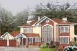 Удивительно привлекательный своей оригинальной и спокойной архитектурой загородный коттедж для постоянной жизни в нем в течение круглого года. Фасады разноображены окнами разных форм, крытые террасы ограждены изящными колоннами, а треугольные элементы крыши добавляют последние штрихи к общей очаровательной композиции. Цокольный этаж в этом проекте не предусмотрен, что обеспечивает возможность постройки на сложных грунтах.