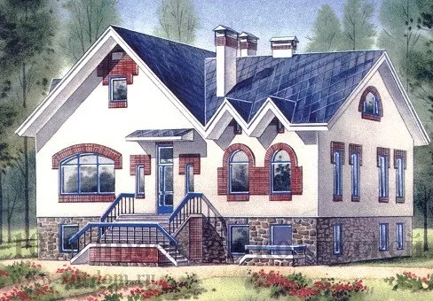 Очаровательные фасады этого загородного коттеджа не могут не задержать на себе взгляд каждого, кто окажется рядом с домом. Это добротный особняк с современными элементами в классическом дизайне. Арочные окна украшают экстерьер, а остроконечные элементы кровли добавляют красок и без того привлекательному дизайну. Крыльцо особняка оборудовано небольшим навесом, укрывающим от непогоды посетителей. Коттедж имеет полноценный цокольный этаж, полностью отданный под комфортабельный отдых членов семьи и их гостей. Бассейн с чашей в 15 кв. м. и комната отдыха размером 65,9 кв. м. занимают главное место в цоколе, который так же дополнен спортзалом в 37,9 кв. м. и несколькими подсобными помещениями хозяйственного назначения.
