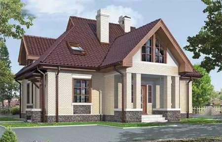 Двухэтажный кирпичный дом с колоннами: проект на 179 кв.м